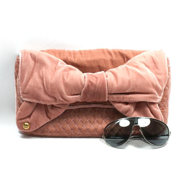 Juicy Couture Pink Bow Velvet Large Clutch