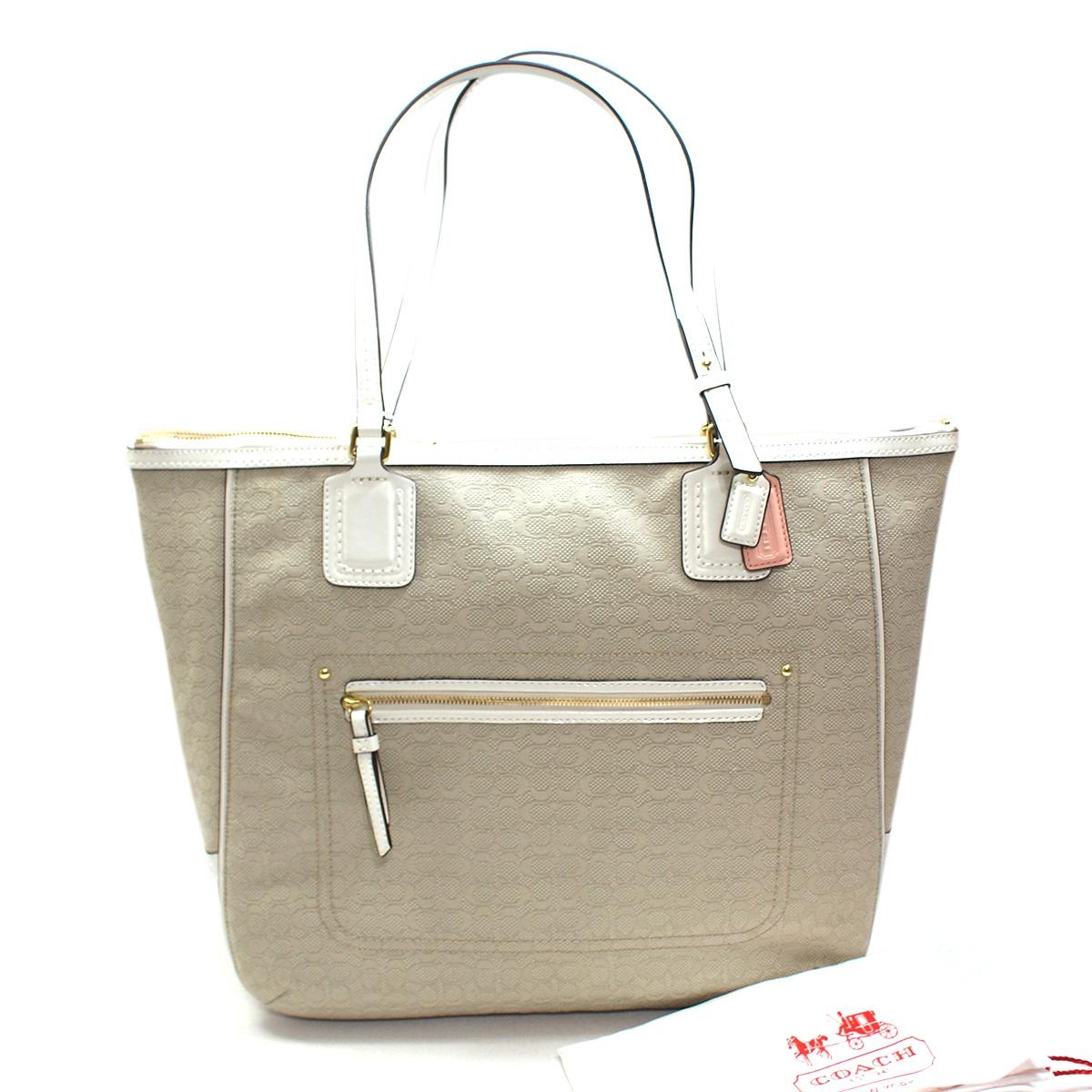 Coach Poppy Signature Oxford Tote Bag Ivory #25078